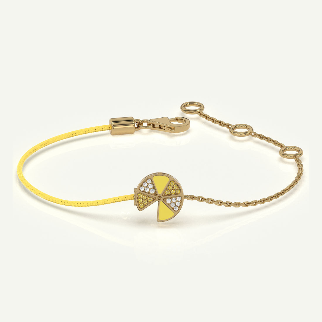 Complimented with a pastel yellow leather cord - set in 92.5 Silver/14kt yellow gold -...