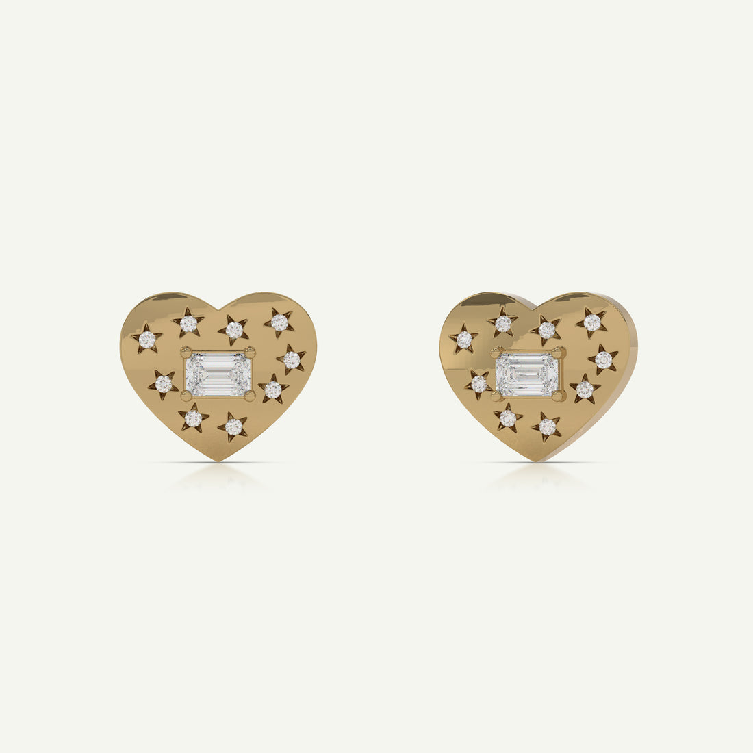 Each earring features a delicate heart shape, beautifully crafted from lustrous 92.5 Silver/14kt yellow gold....