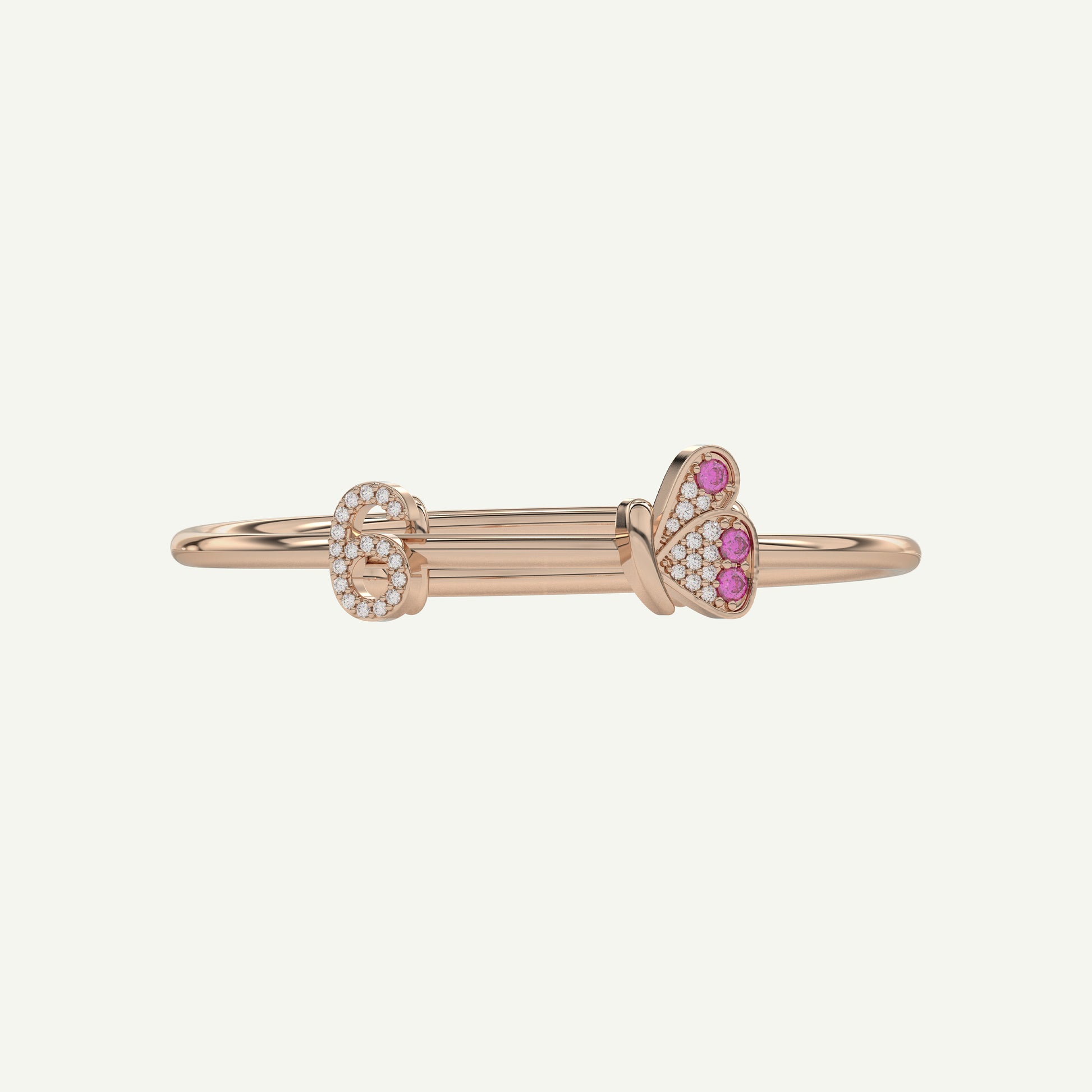 This Fluttering Innocence Kada made in 92.5 Silver/14KT rose gold - encapsulates your baby's innocence with our dainty butterfly motif made with pink and peach enamel detailing and gold disc style number motif (0-9) that marks their little age perfectly. This kada is not only visually captivating but also safe and comfortable for your little one to wear. Dress up their wrists with this precious accessory that captures the innocence and joy of childhood with their age effortlessly.