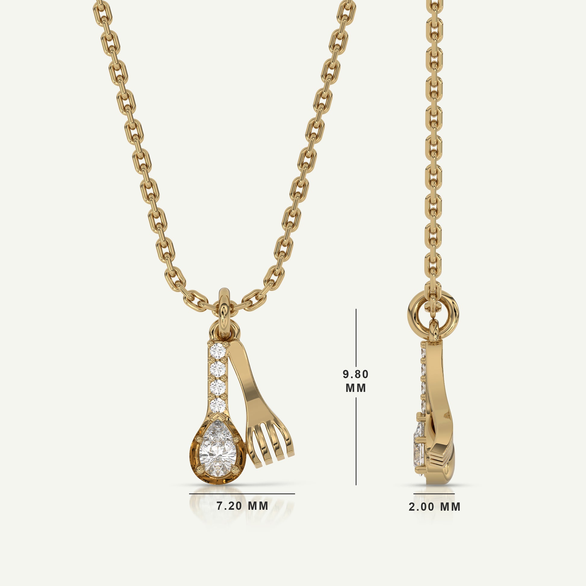 Just like you, this pendant is one-of-a-kind. With its fun fork and spoon design, this is perfect for kids who love to be unique and stand out. Made in 92.5 Silver / 14kt yellow gold and diamonds - this pendant is an essential item for your loved one.