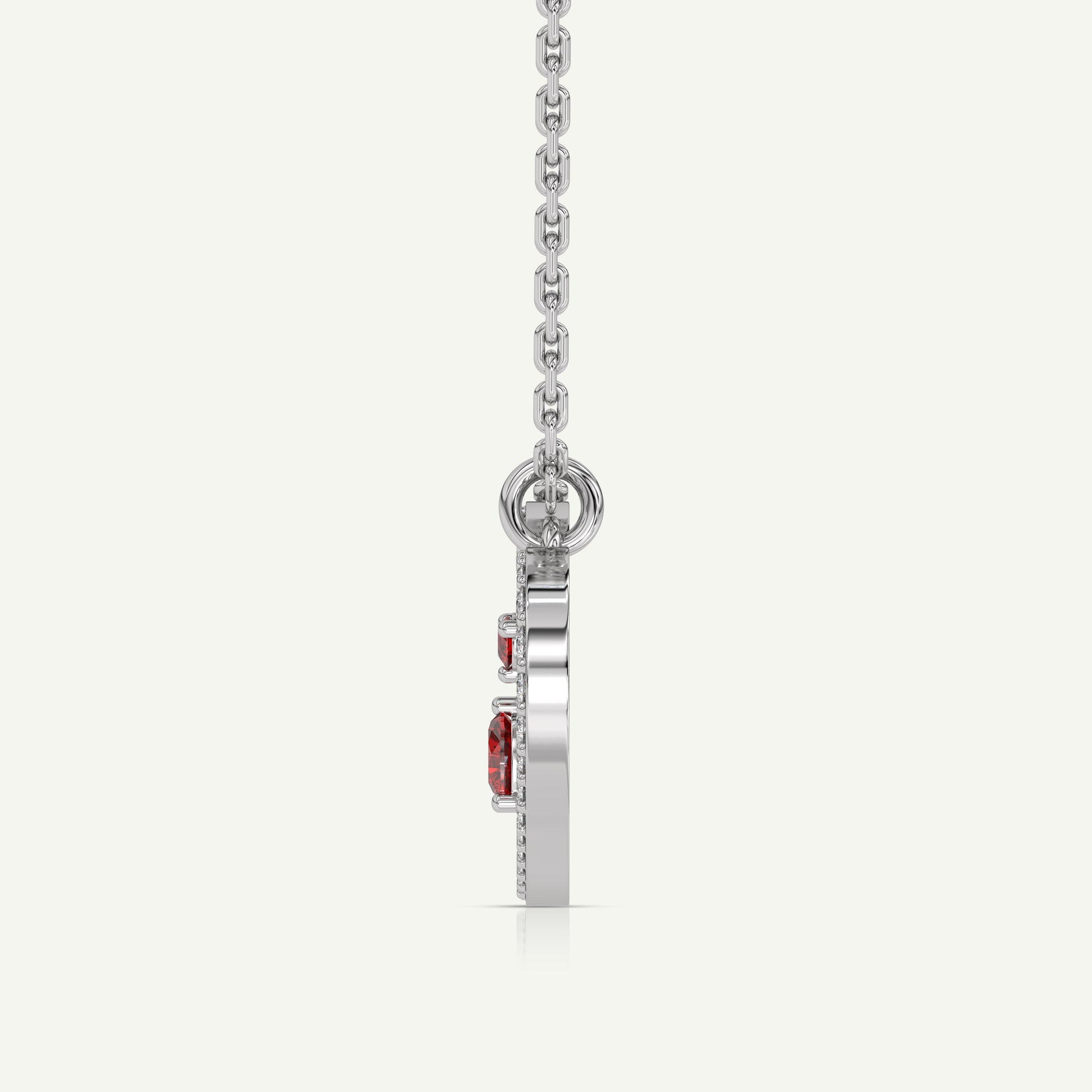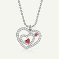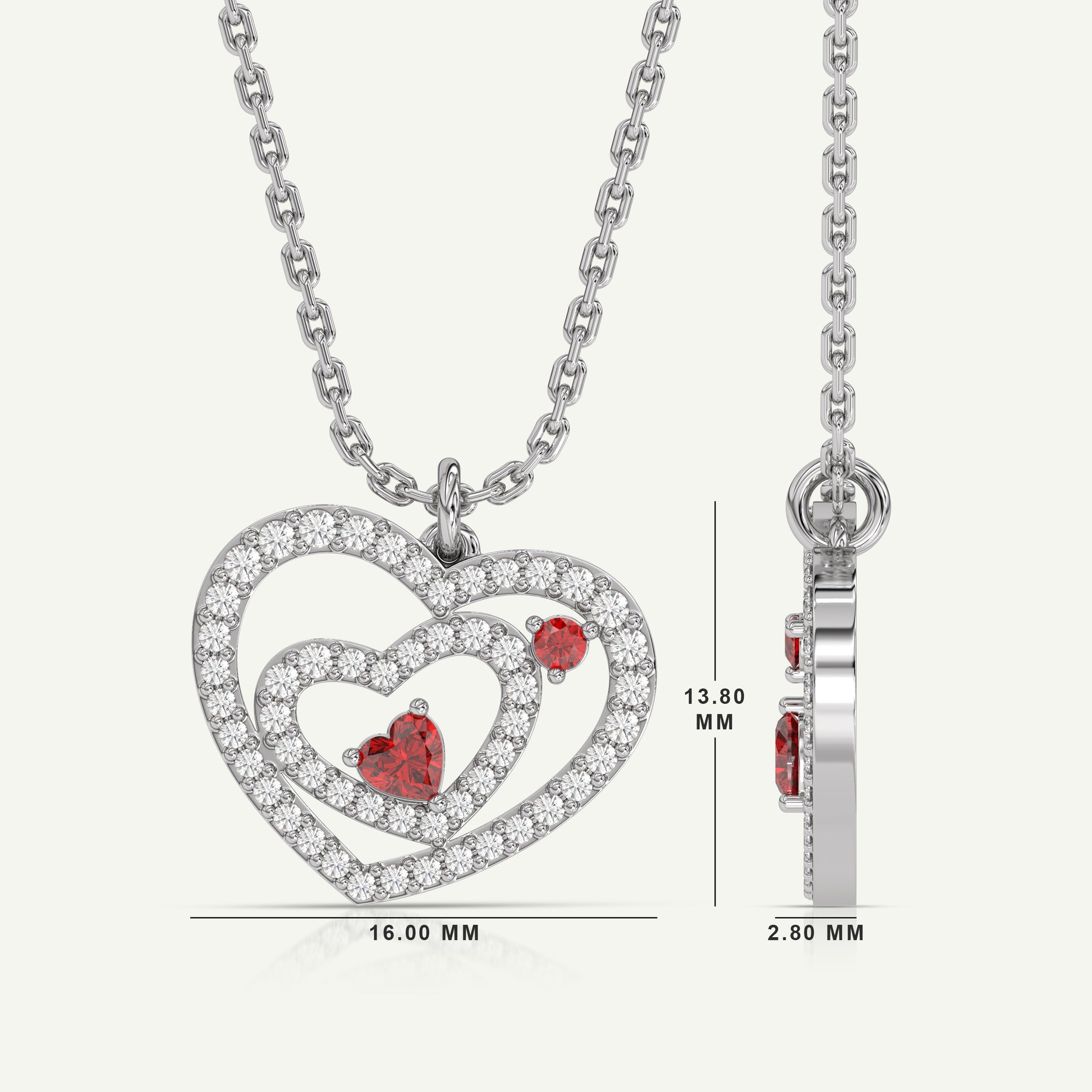 Celebrate the timeless bond of motherhood with the Infinite Love Pendant, a perfect gift from one loving mom to another. This piece is crafted in lustrous in 92.5 Silver/14kt white gold, symbolizing purity and strength, just like a mother's love. Studded with diamonds and vibrant red gemstones, the pendant forms a heart within the heart symbol, representing endless love and the unbreakable connection between mothers and their children. Perfect to gift from one mom to another or from kids to their moms.
