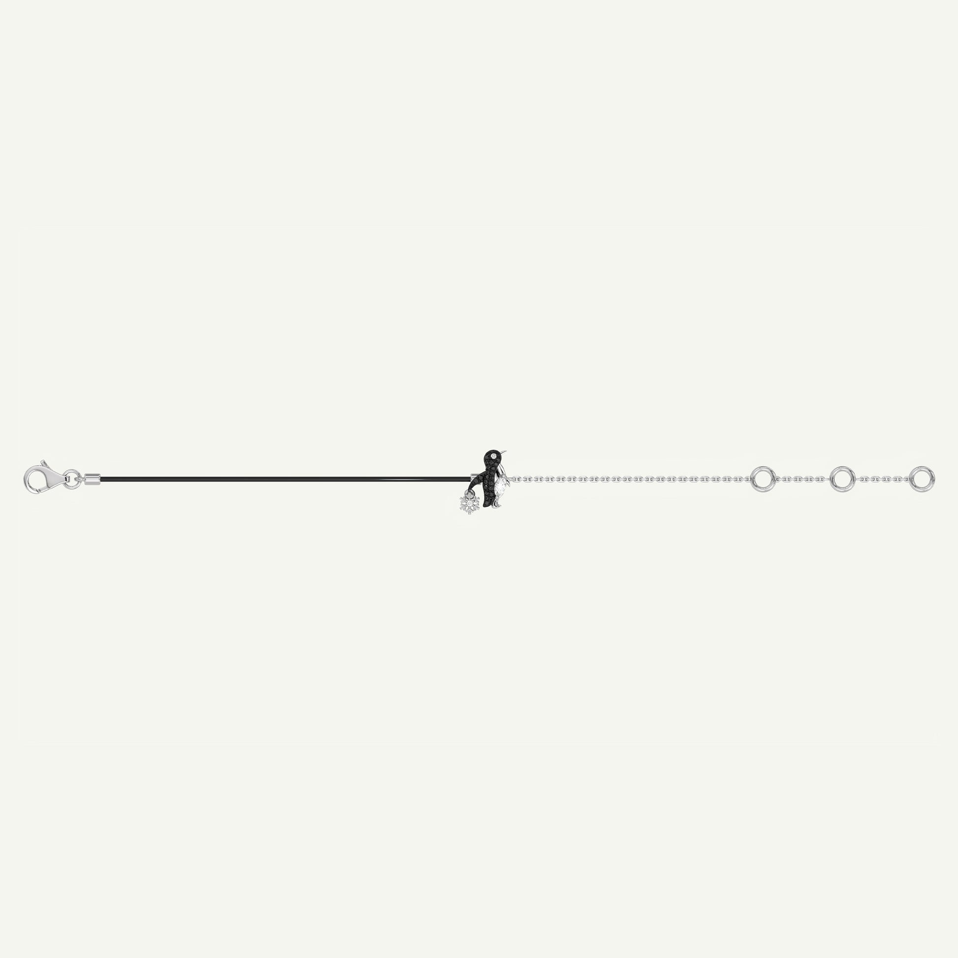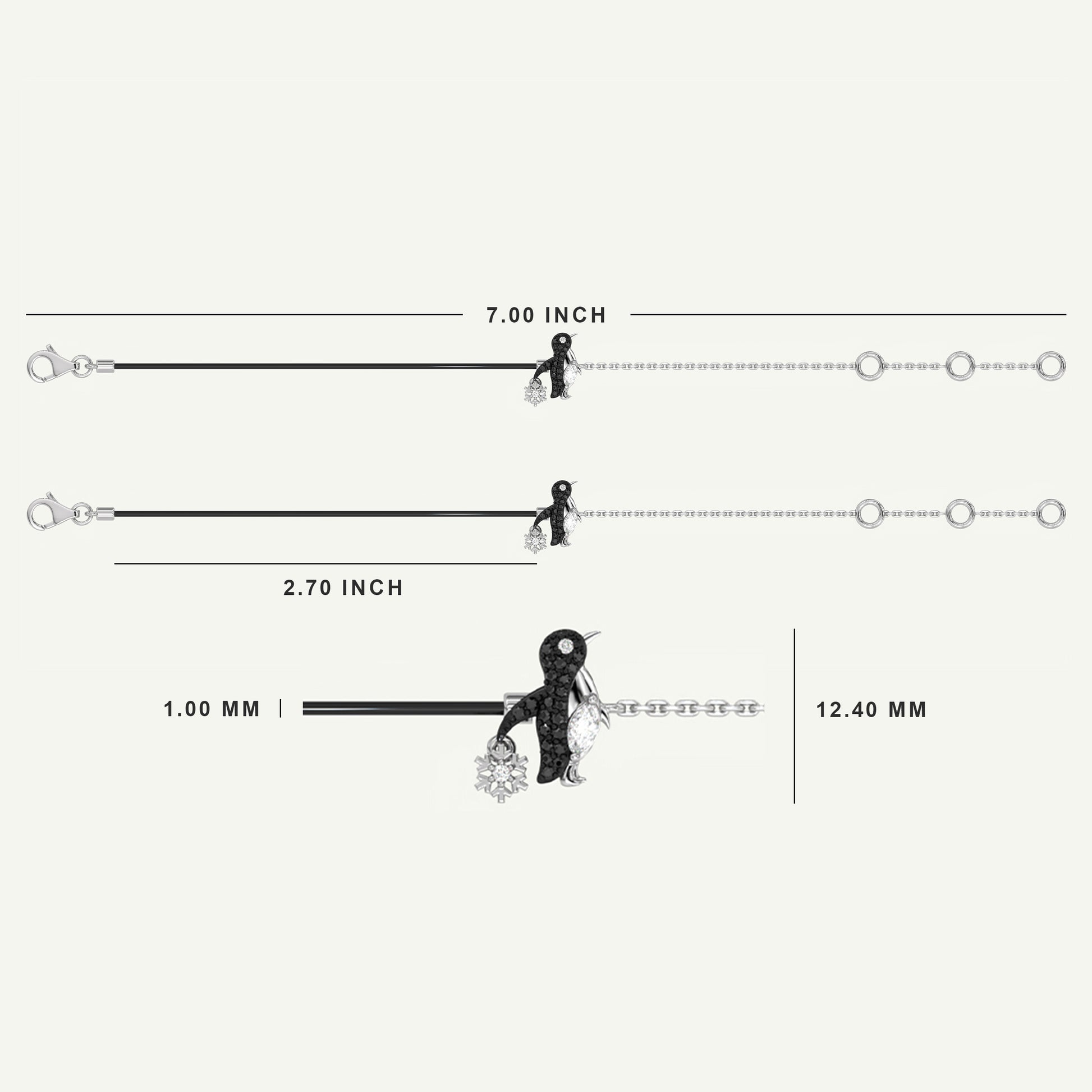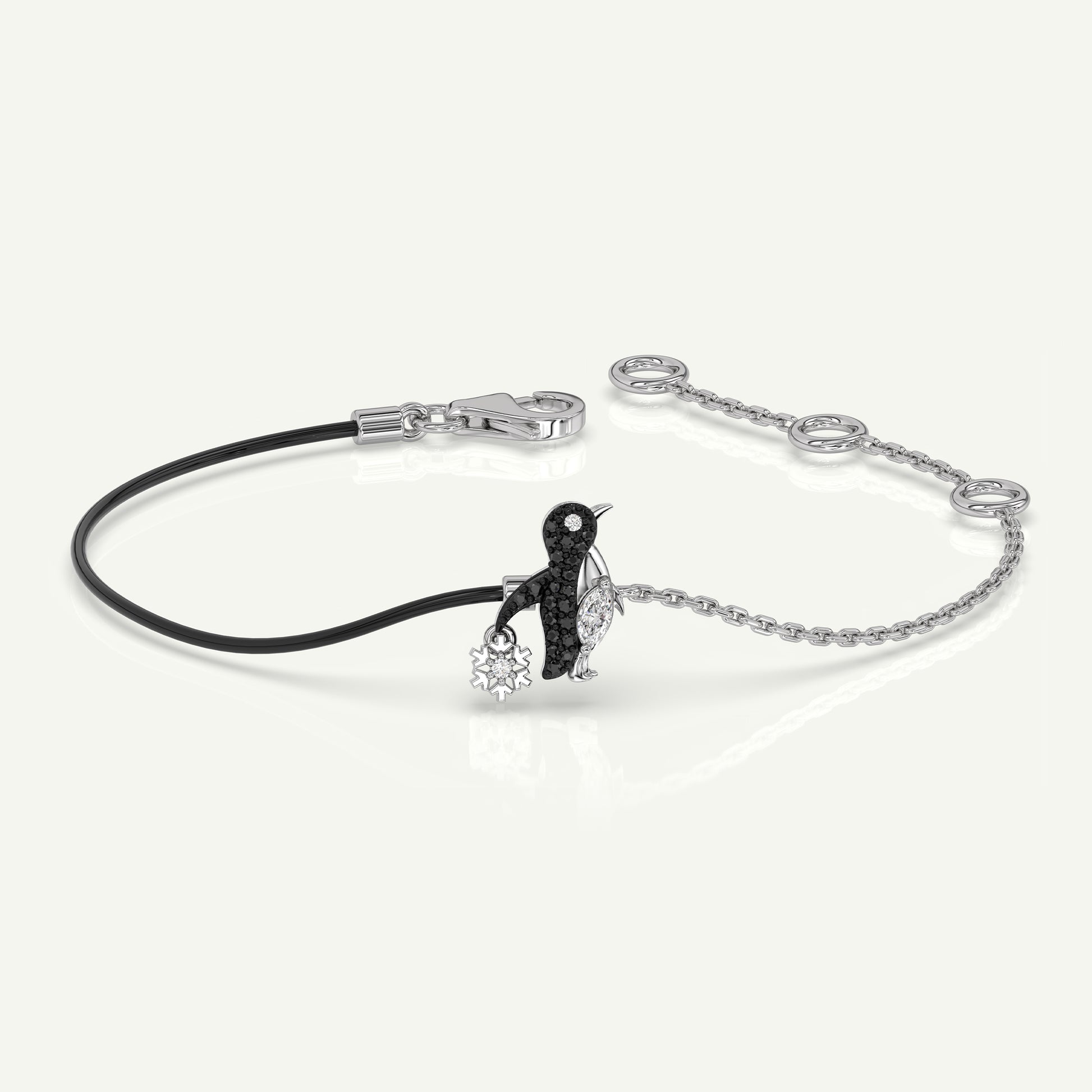 This classic black leather cord strap bracelet sparkles with a penguin-shaped in diamonds set in 92.5 Silver/14kt white gold and features cute black enamel detailing, making it the perfect magical treasure to wear every day. Appropriate for kids, teenagers and adults - embrace the fun and charm of this delightful penguin buddy in a bracelet today!