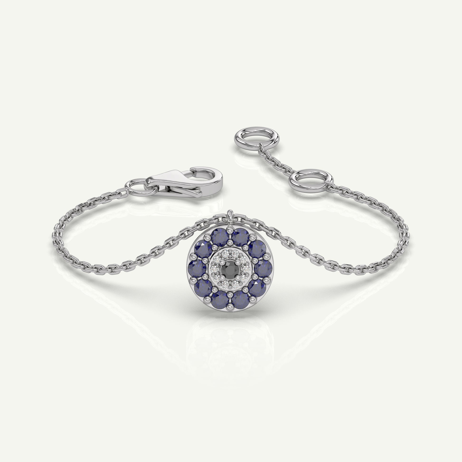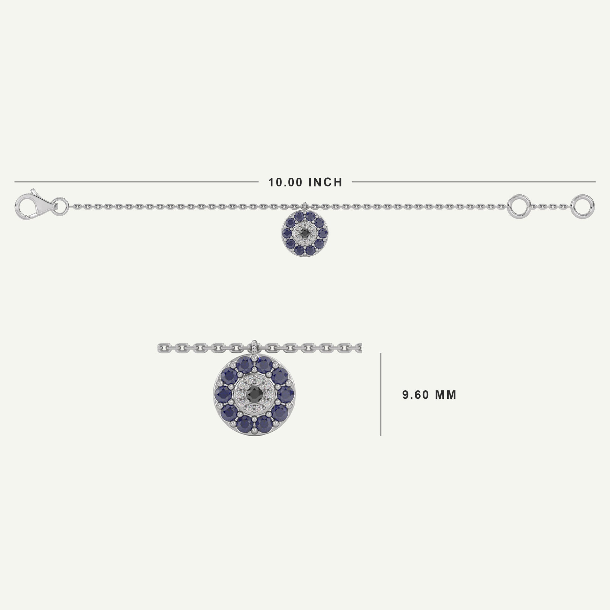 Protect your aura, shield your soul - let the evil eye have no control. This mini Nazar Ninja anklet is small in crafting but mighty in its glory - handcrafted in 92.5 Silver/14kt white gold and with meticulous attention to colour and diamond quality, this anklet is ideal to gift yourself or your loved one.