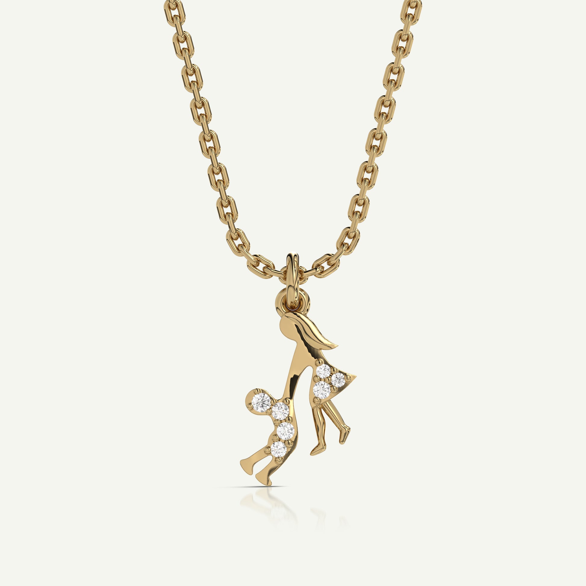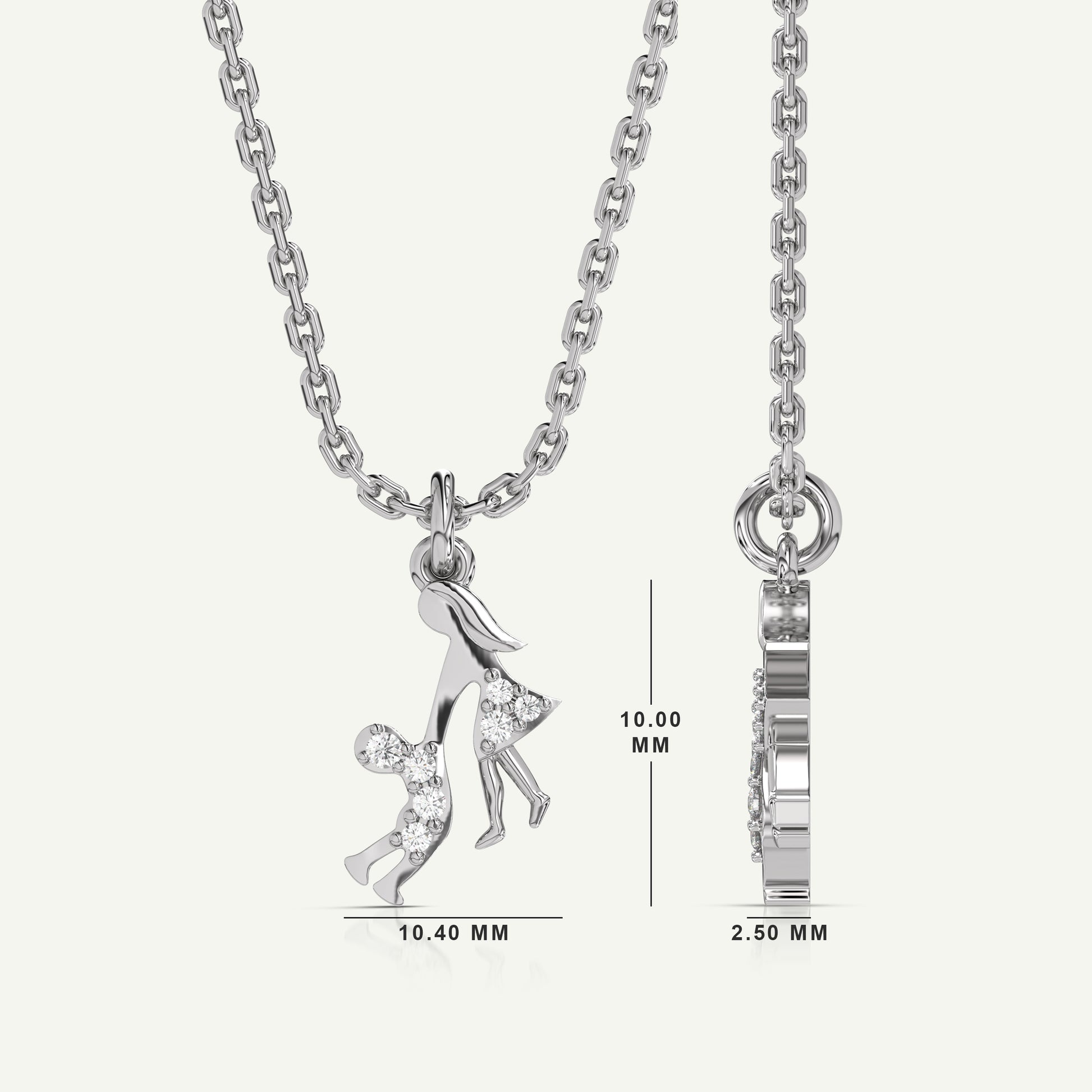 Celebrate the profound and eternal connection between a mother and her child with our "Our Unbreakable Bond" Pendant. The intricate design showcases a mother gracefully twirling her child, their figures intertwined in a dance of love and affection. This pendant is more than just a piece of jewellery; it's a heartfelt tribute to the special moments and memories that define the unbreakable bond between a mother and her child. Crafted with meticulous attention to detail, this pendant is available in your choice of three gold colours. Let this pendant be a symbol of your enduring love and the cherished moments that make life truly special.