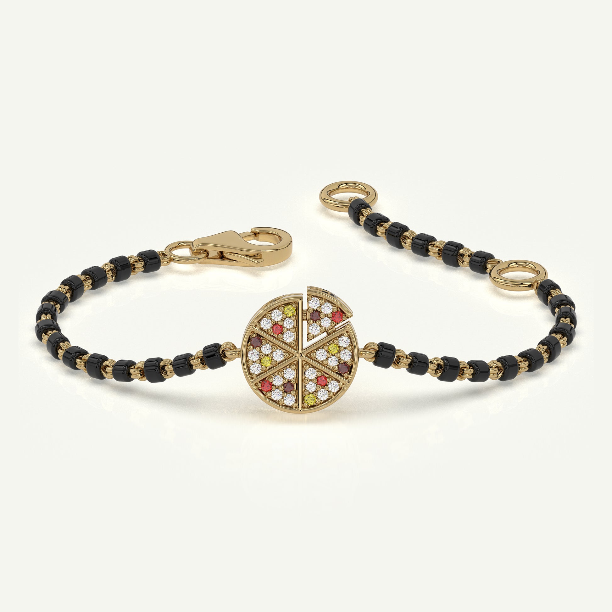Hey there, little pizza lover baby! Get ready to add some sparkle to your baby's day with our super fun Pizza My Heart Diamond and Red Stone Nazariya. This 4-5 inch adjustable nazariya is just like your favourite cheesy, yummy pizza, but even better because they’re made with dazzling diamonds and shiny red stones set in bright 92.5 Silver / 14kt yellow gold!