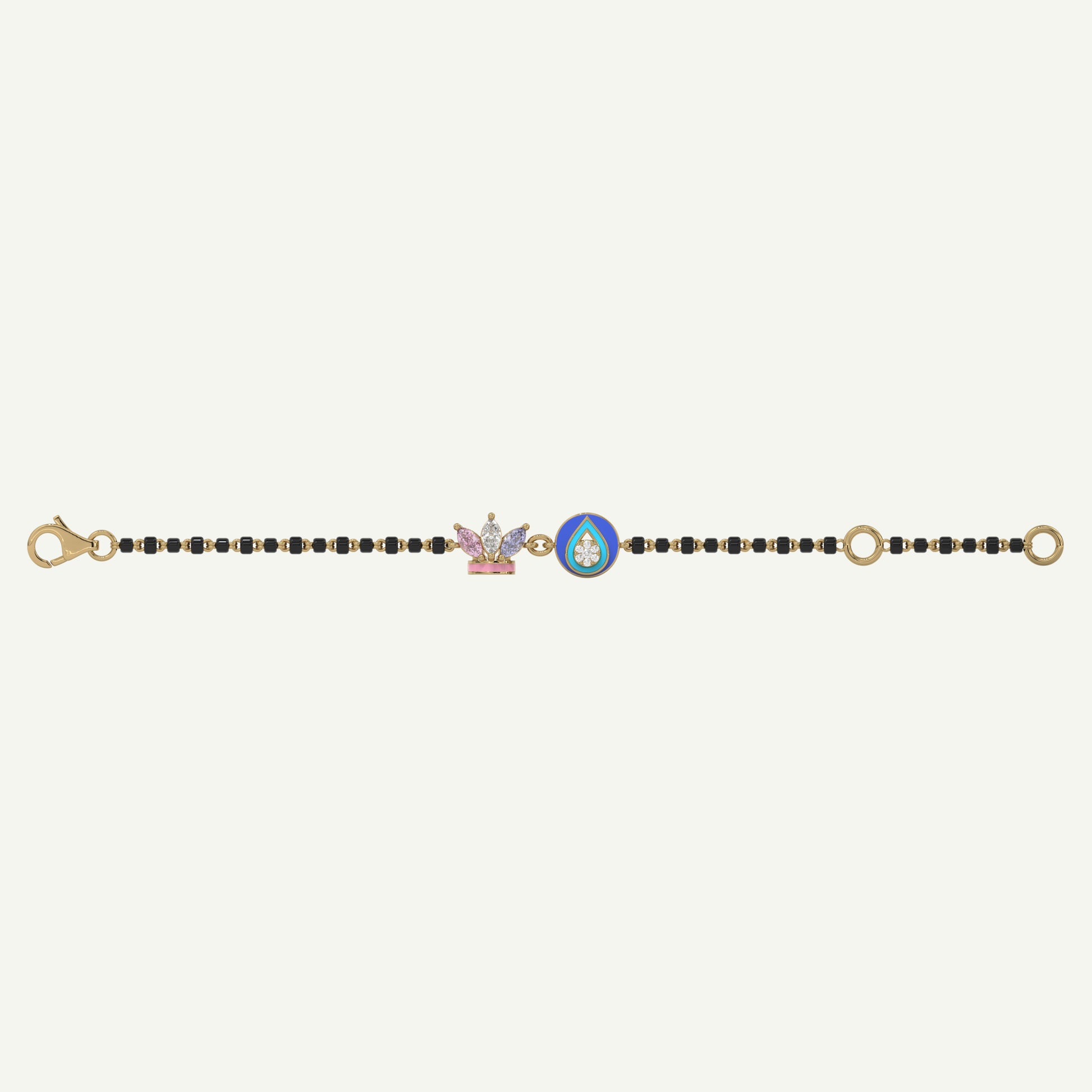 Introducing our Protected Majesty Nazariya - this nazariya features two motifs: a protective evil eye symbol and a charming crown motif, symbolizing protection and royalty for your regal one. Made from high-quality, hypoallergenic in 92.5 Silver/14kt white gold motifs and yellow gold chain link, this nazariya is safe for delicate baby skin, ensuring comfort and preventing any allergic reactions. Designed to be worn by babies aged 0-3, this nazariya is lightweight and gentle, making it perfect for everyday wear.